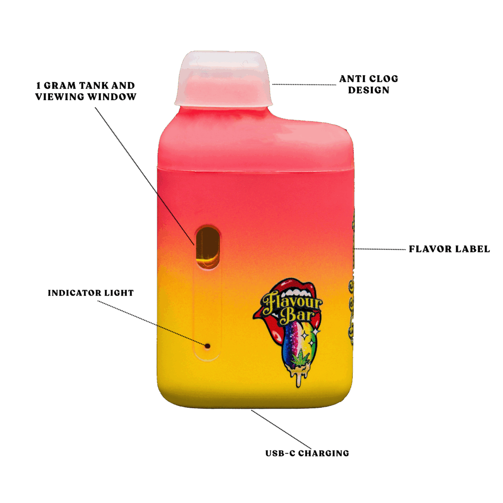 The Flavour Bar isn’t your average disposable. Each device is infused with premium botanical terpenes and packed with ten signature flavors that are as vibrant and expressive as they are satisfying. Whether you’re craving fruity or dessert flavored hits, every draw is smooth, potent, and bursting with taste.